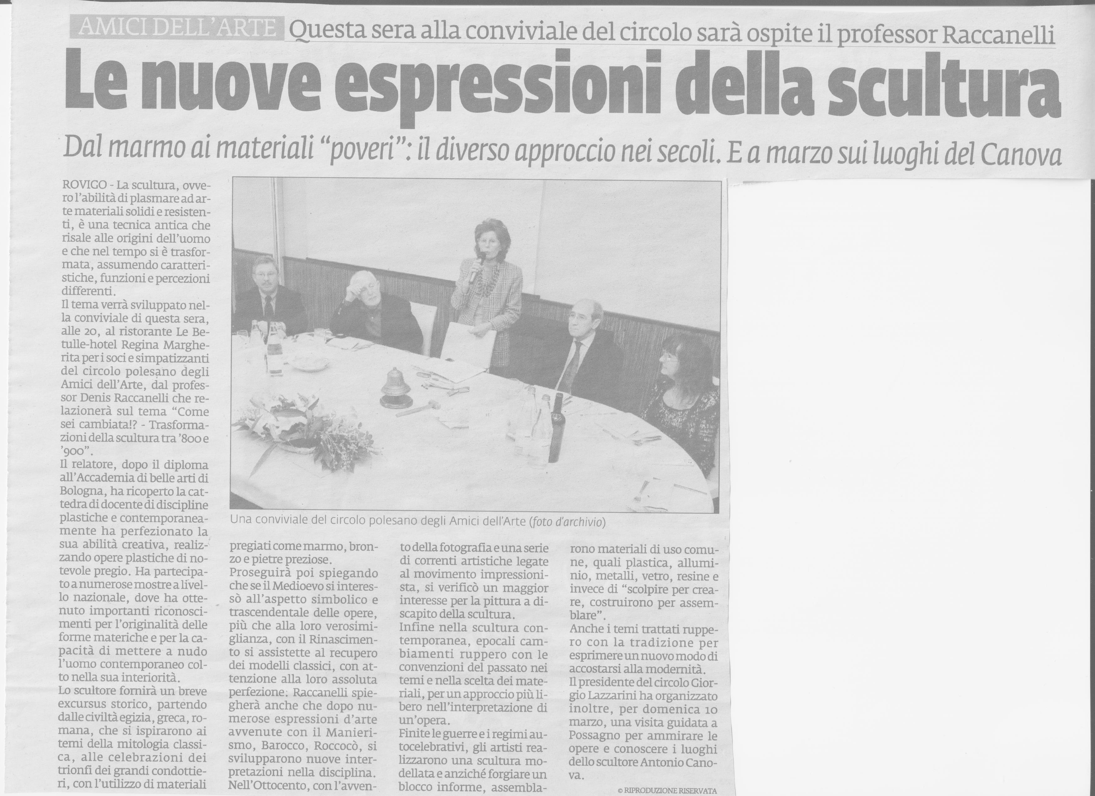 LA CONVIVIALE DI GIOVEDI’ 21 FEBBRAIO- L’ARTE DELLA SCULTURA IERI E OGGI