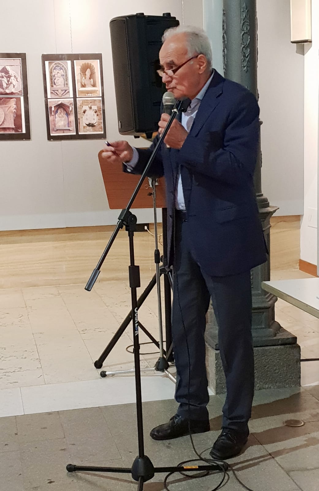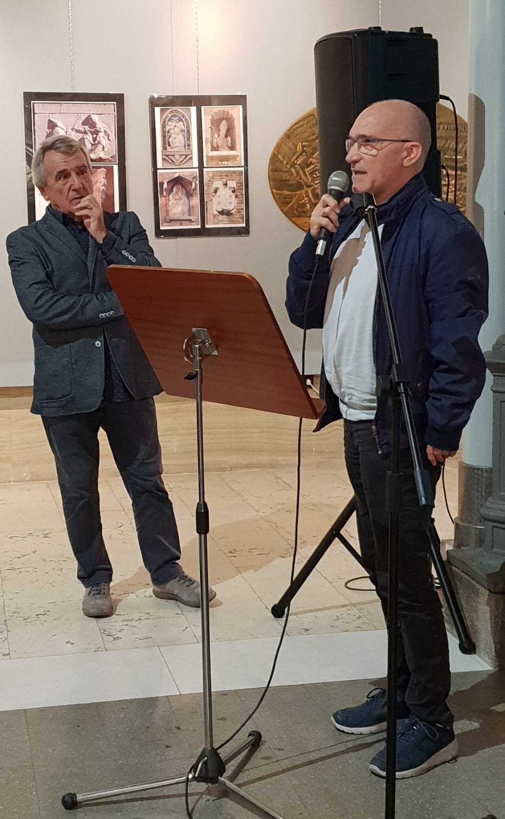 Il Prof. Roberto Tovo, Vicesindaco e Assessore alla Cultura del Comune di Rovigo, porge i saluti dell’Amministrazione ai presenti. Sullo sfondo il Presidente del Circolo Polesano degli Amici dell’Arte, Dott. Giorgio Lazzarini