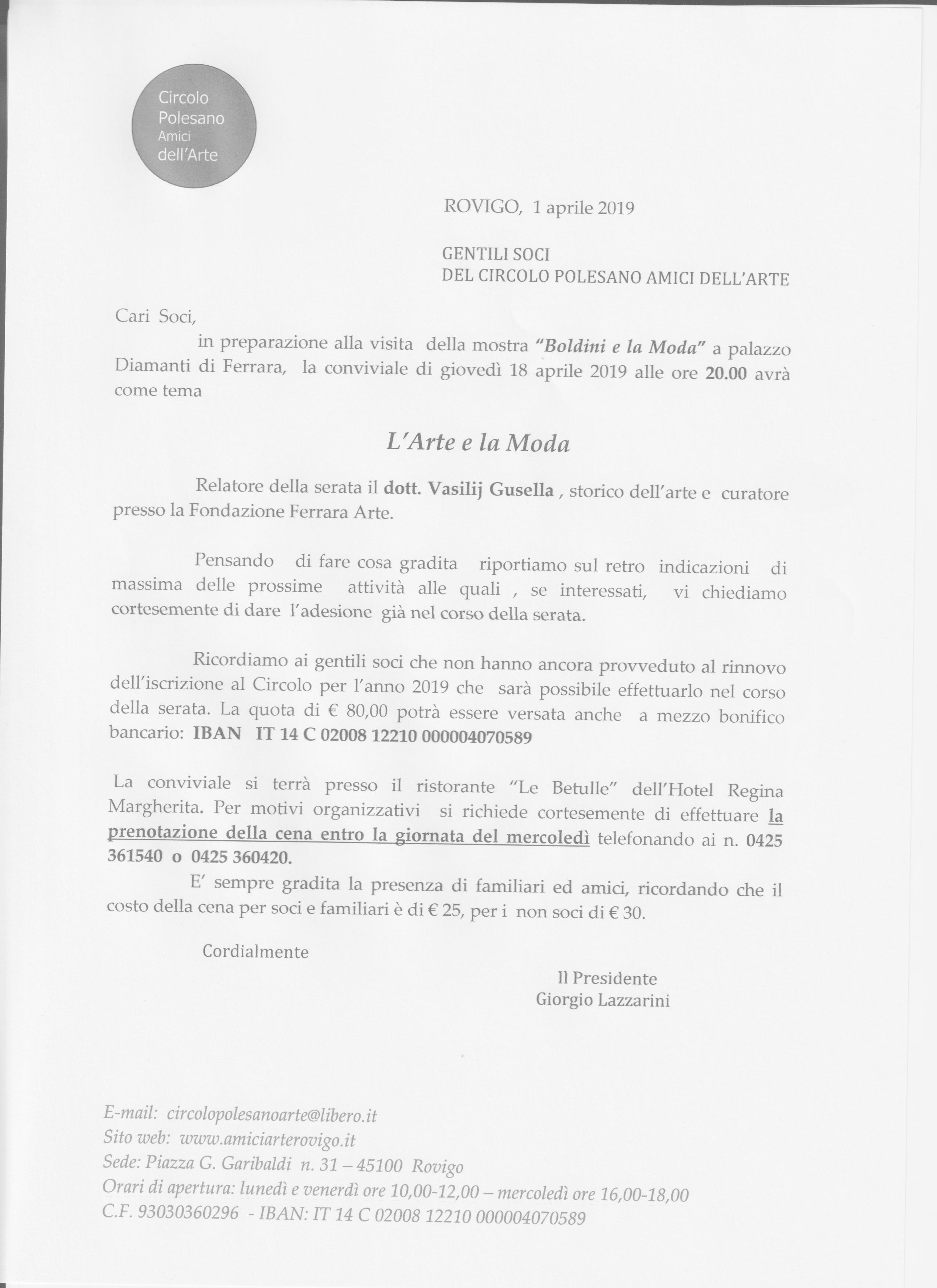 La conviviale di giovedì 18 aprile