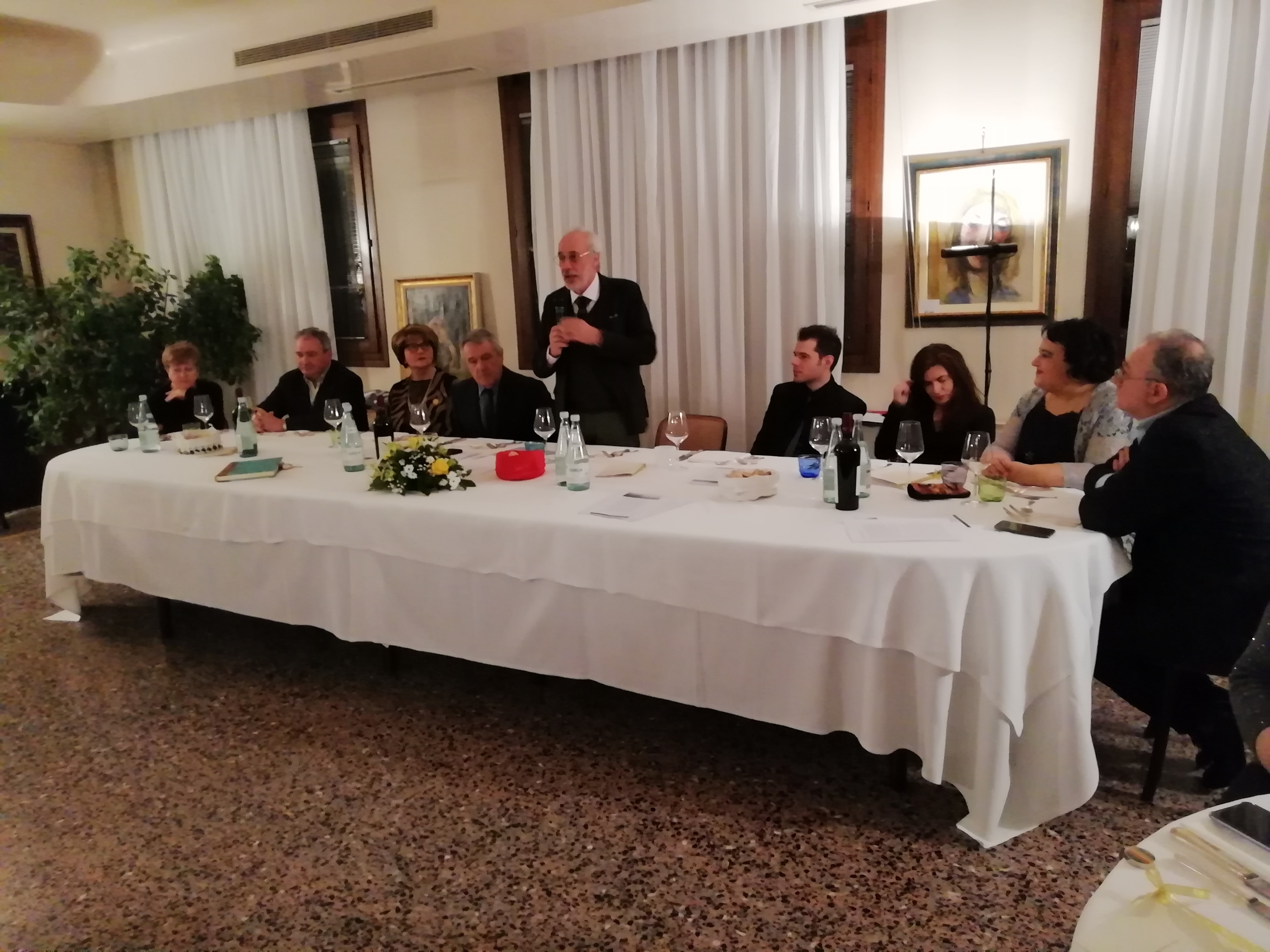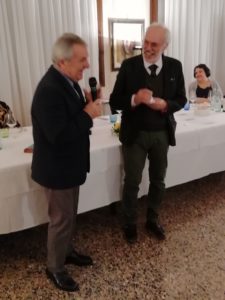 Il Presidente uscente Giorgio Lazzarini suggella il passaggio delle consegne al nuovo Presidente Maurizio NoceMaurizio Noce presenta ai soci il programma del suo mandatoGli ospiti della serata: il musicista e cantante lirico Francesco Toso, al centro Miranda Cortèz, docente di fisarmonica, e la relatrice Cristina Miriam Chiaffoni attrice e cantante liricaMomenti della serata
