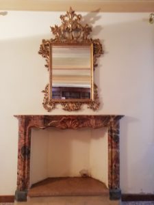 Nella parete rivolta su piazza Garibaldi, ammiriamo un camino in marmo con un aspetto di scultura e di architettura ben inserito nello spazio che caratterizza l’ambiente, tanto da venire comunemente definito “la stanza del caminetto”.