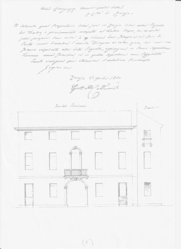 Nonostante le accurate ricerche, non si trovano notizie precise risalenti all’epoca di costruzione del Palazzetto, né dei proprietari che si sono avvicendati negli anni. Sembra che l’edificio risulti esistente già dal 1700 e da un documento (reperito all’ Archivio di Stato) datato 1830, si viene a conoscenza di un Progetto di richiesta di variazione dell’immobile per una ristrutturazione.