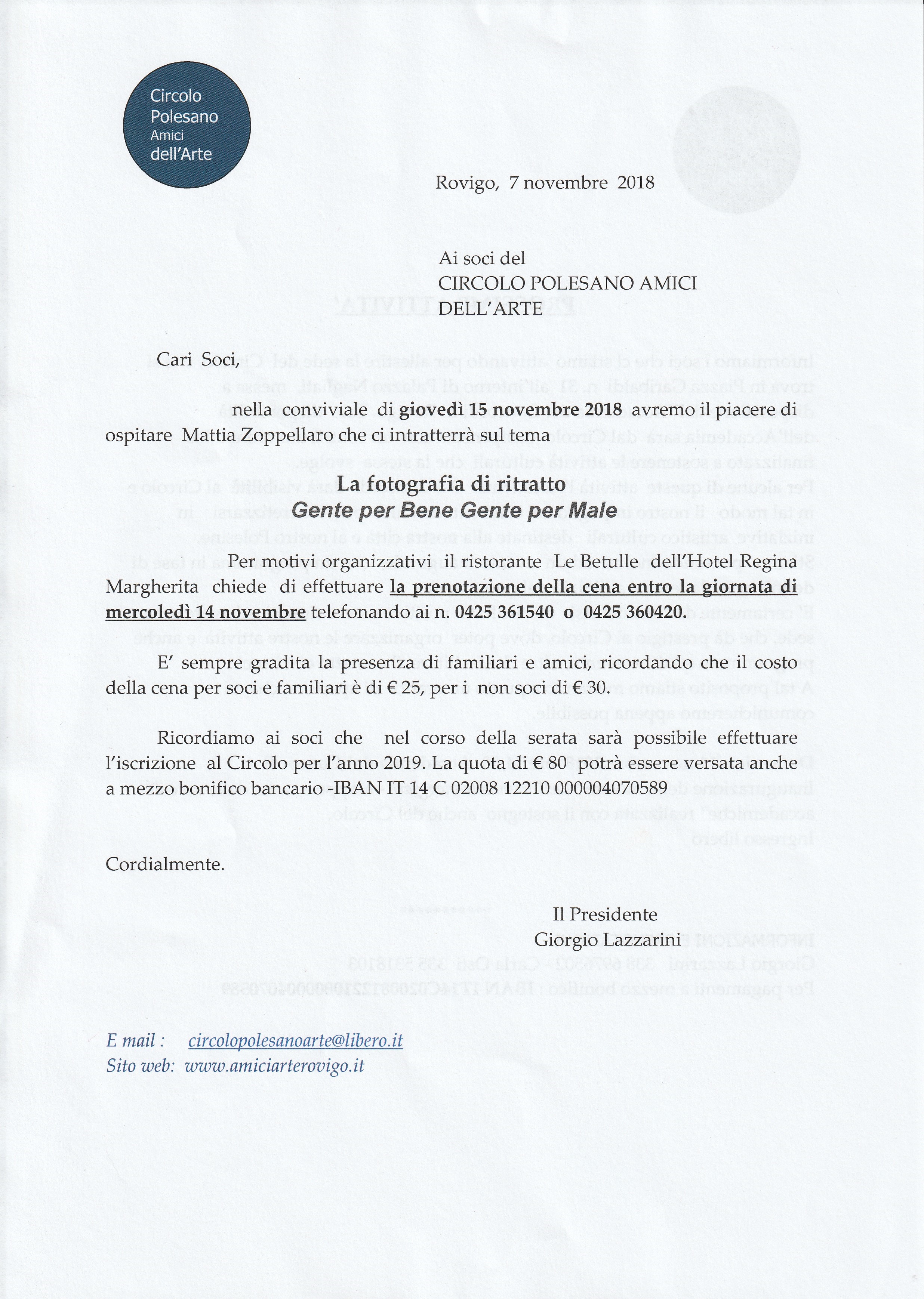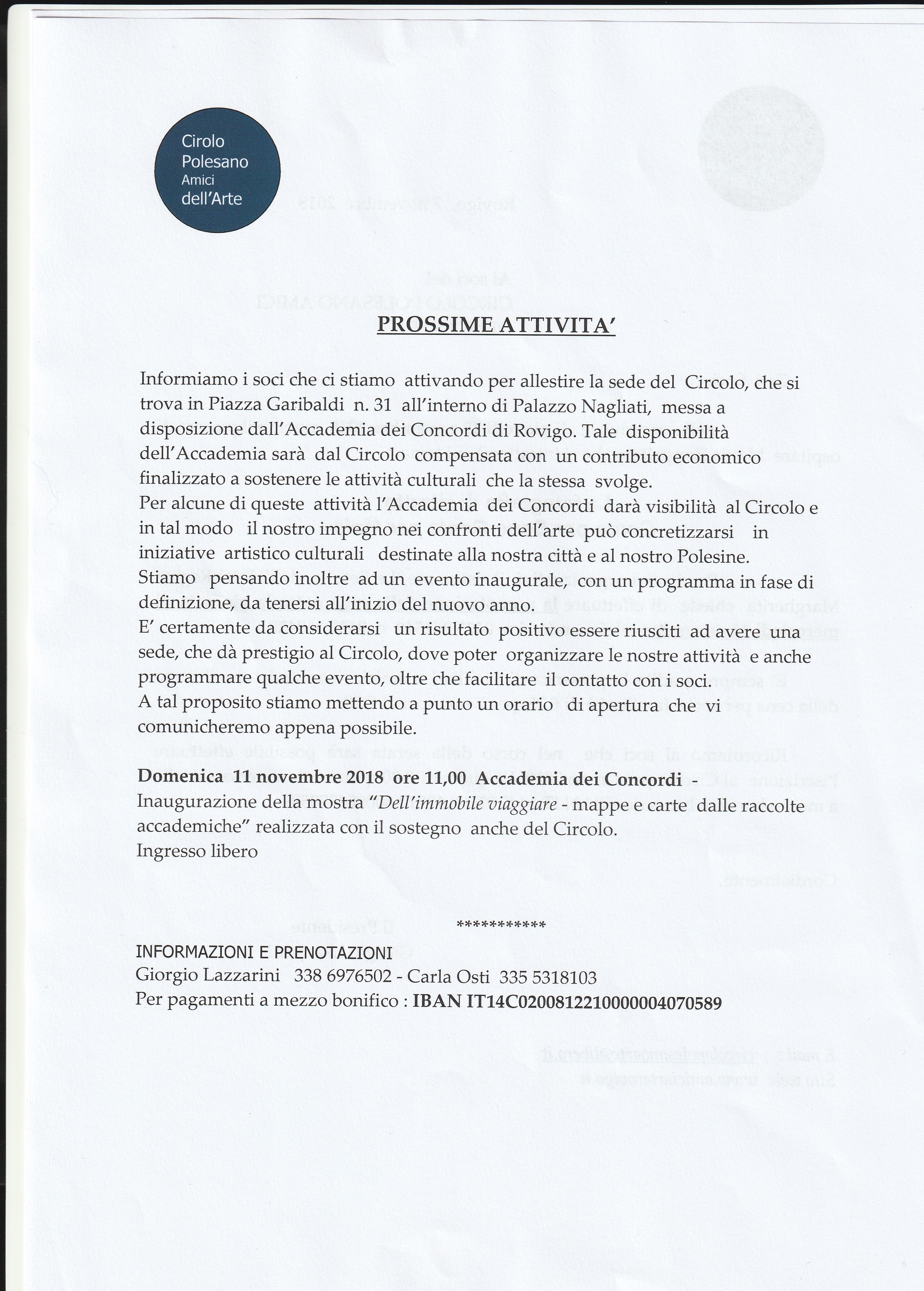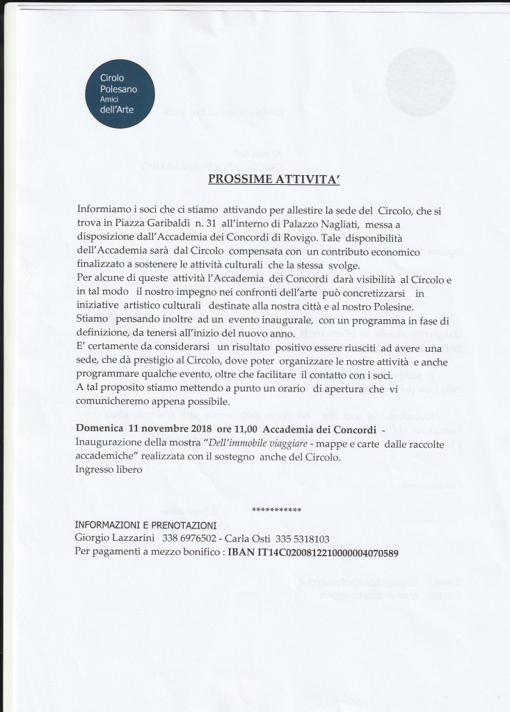 PROSSIMI APPUNTAMENTI DEL CIRCOLO